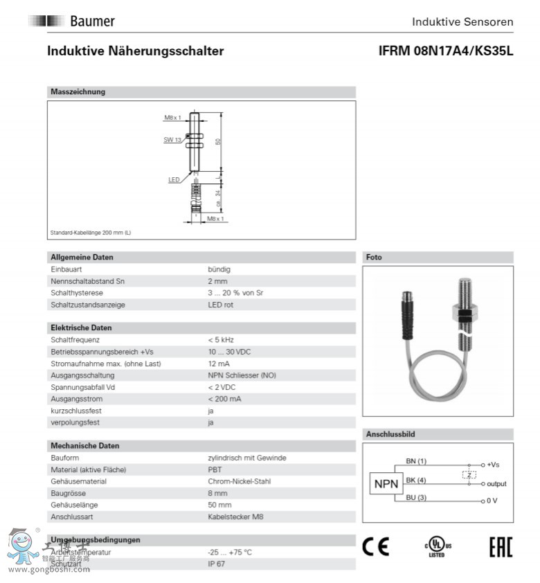 IFRM 08P17A4/S35L堡盟傳感器Baumer電感式接近開關(guān) |