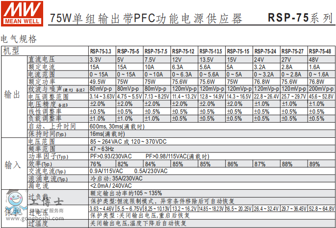明緯RSP-75-3.3V功能開關電源現貨