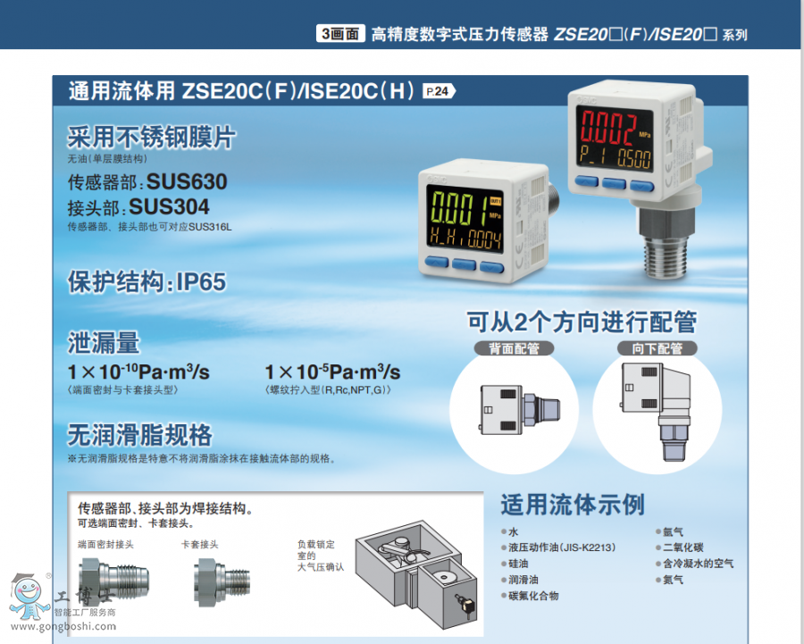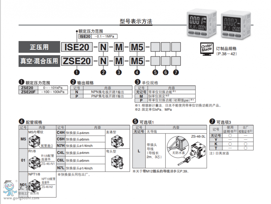 SMC壓力傳感器 通用流體用 混合壓用 ZSE20F-P-M-01