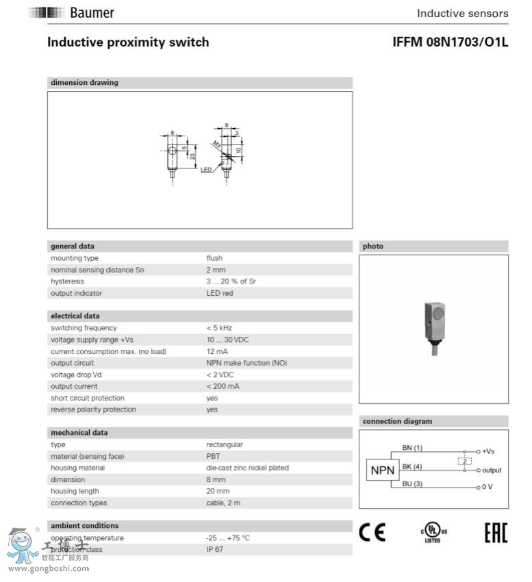 IFFM 08N37A5/O1S35L電感式接近開關-Baumer 堡盟傳感器 |