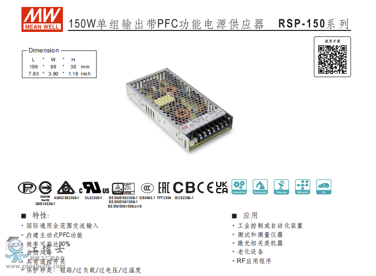 明緯開關電源RSP-150-7.5V功能開關電源現貨