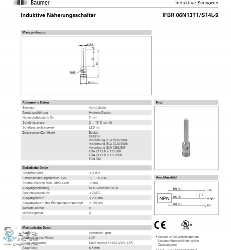 IFBR 06P33T1/S14L-9電感式接近開關(guān)-Baumer堡盟傳感器 |