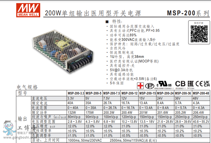 明緯開關MSP- 200-24v系列功能開關電源現貨