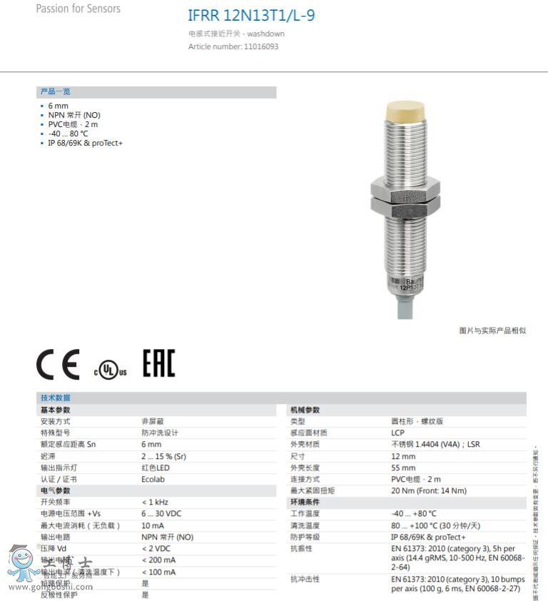 Baumer/堡盟IFRR 12N33T1/PL-9電感式接近開關傳感器 |