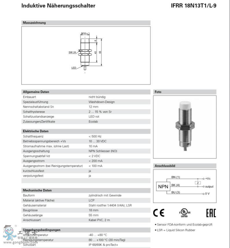 Baumer 堡盟傳感器IFRR 18N13T1/PL-9電感式接近開關傳感器可開增票 |