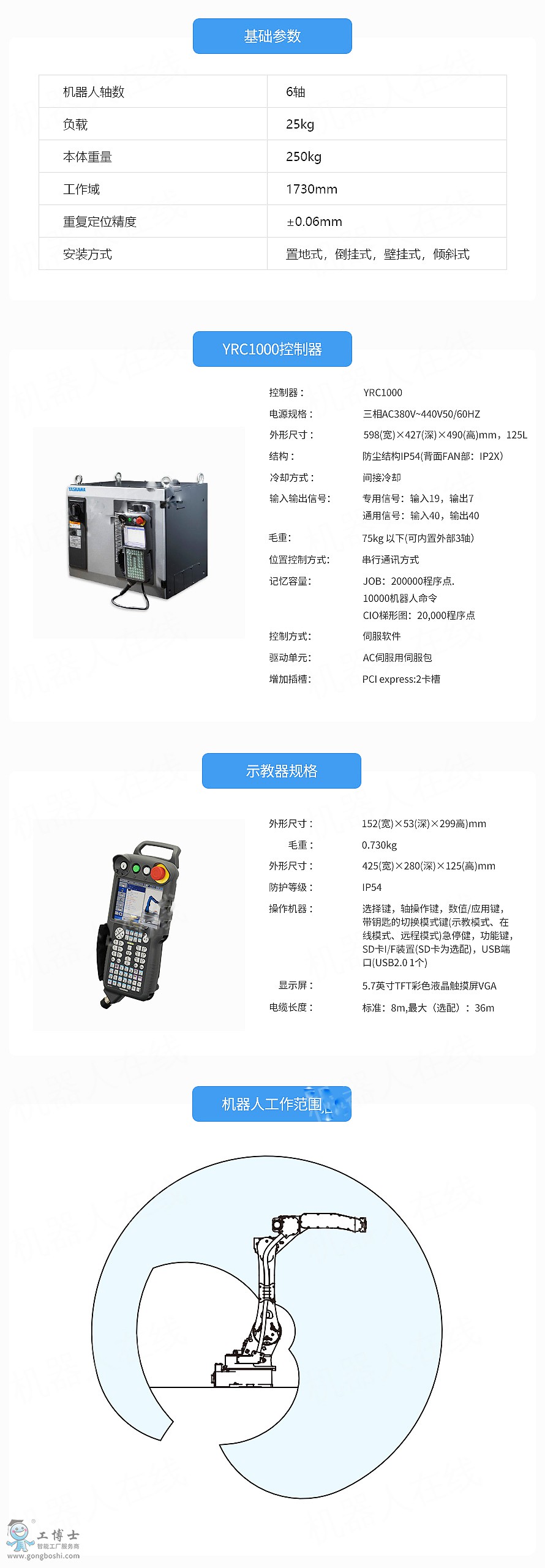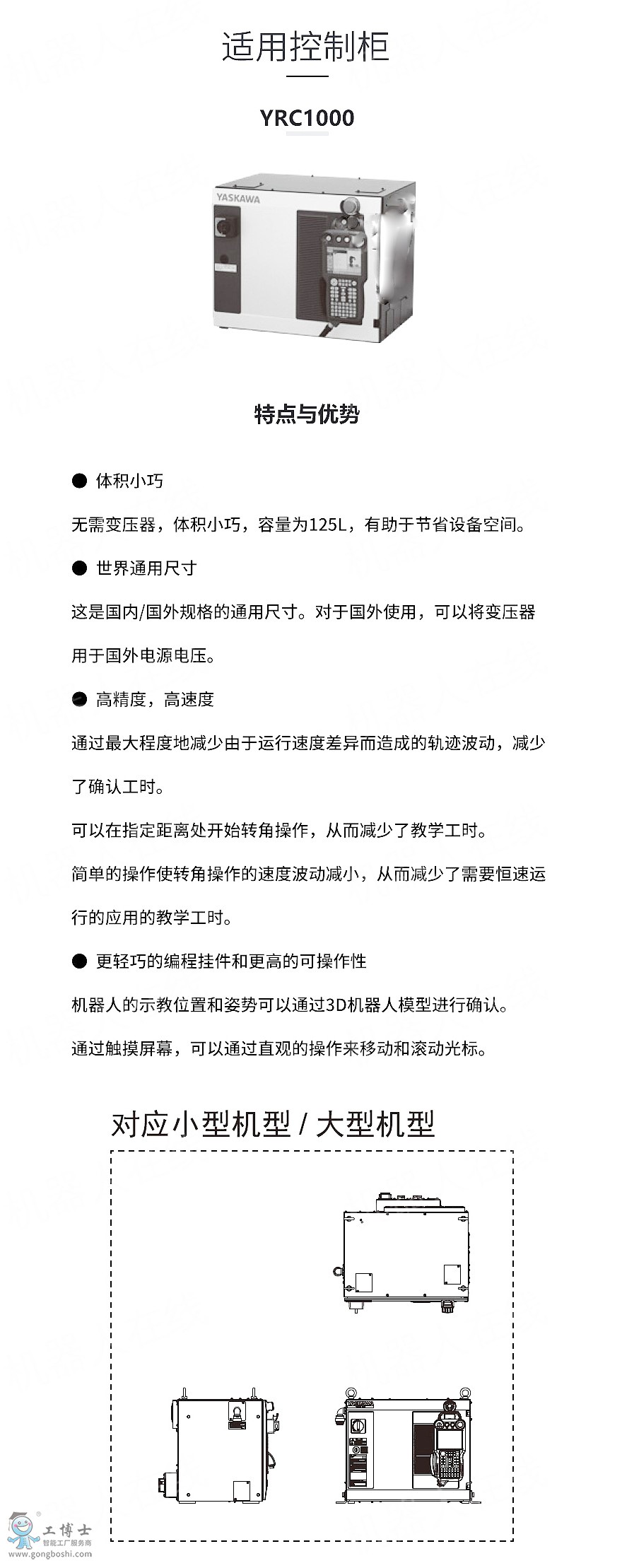提高生產性 ●合成速度比現有機型提升約30% 實現節拍時間縮減 ●采用了減小手臂與周邊設備的干涉的設計 ●采用中空手臂構造,可將傳感器線纜以及氣體管道內置其中 ●合成速度比現有機型提升約30% 實現節拍時間縮減 ●采用了減小手臂與周邊設備的干涉的設計 ●采用中空手臂構造,可將傳感器線纜以及氣體管道內置其中 抗干擾的堅固構造 ●機器人手腕部分采用IP67標準 ●可對應接頭基座面向下引出 提升維護性 ●減少了機器人與控制柜間的電纜線數,提升了維護性的同時提供簡潔的設備 ● 大幅度縮減電纜定期更換作業時間