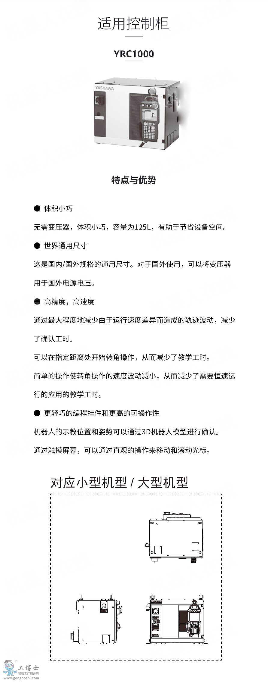 根據高速動作和寬廣的動作范圍,應用范圍擴大。 通過強化的手腕部的容許力矩、容許慣性力矩,可以對應各種工作 減少了機器人與控制柜間的電纜線數,提升了維護性的同時提供簡潔的設備