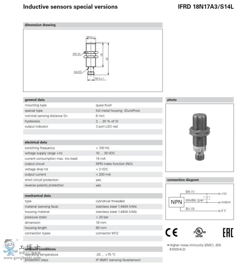 Baumer 堡盟接近開關IFRD 18P37A3/S14L電感式接近開關傳感器現貨可開增票 |