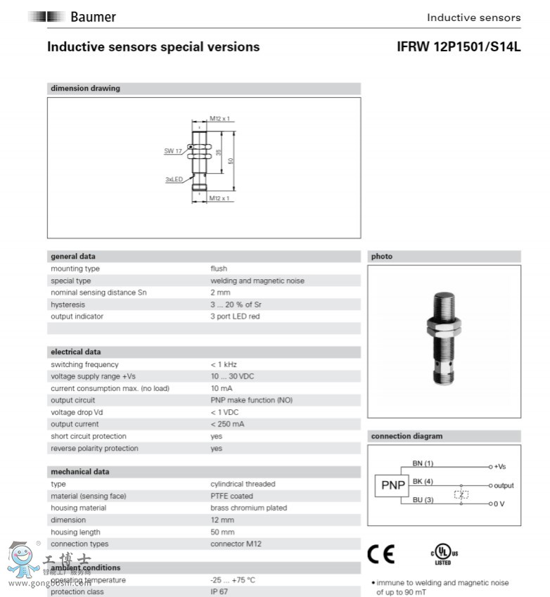 IFRW 18P1501/S14L堡盟傳感器Baumer電感式接近開關傳感器 |