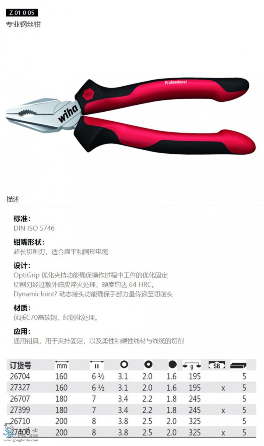 威漢 wiha Z01018005專業鋼絲鉗180mm德國原裝進口 |