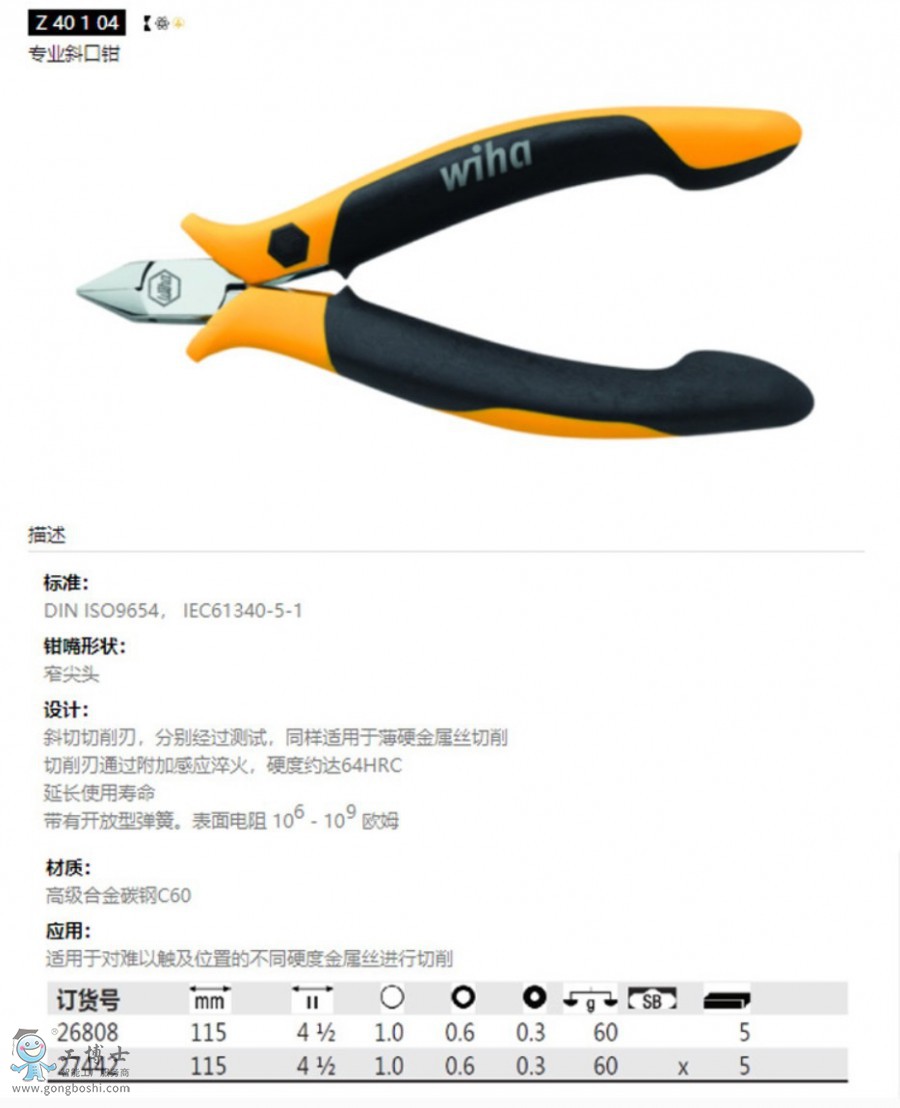 威漢 wiha Z40111504專業斜口鉗115mm德國原裝進口26808 |