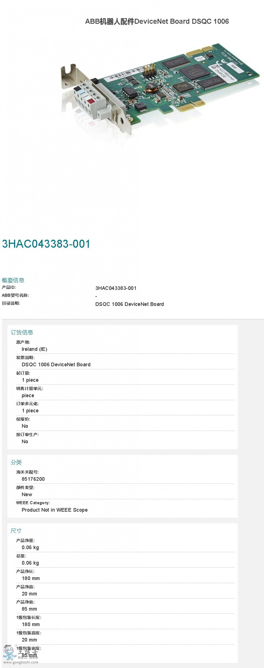 ABB機器人配件DeviceNet Board DSQC 1006