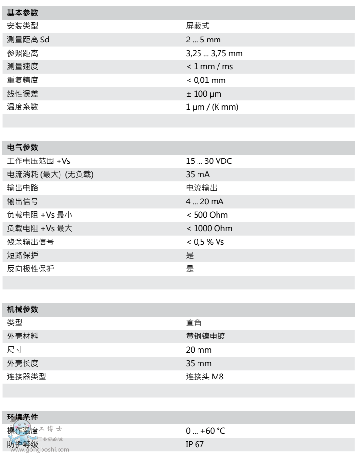 Baumer/堡盟IWFM 20U9501/S35電感式測距傳感器 |