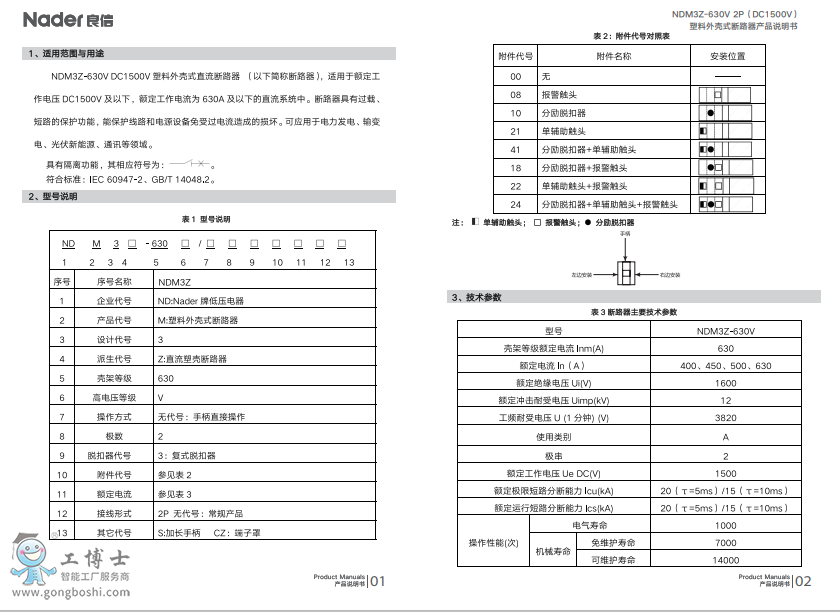 良信塑料外殼式斷路器 NDM3Z-630V 2P(DC1500V) |