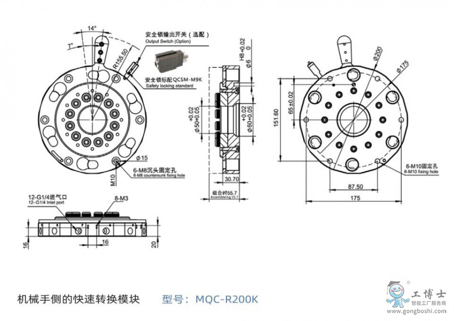 GBS-04-MQC-200 工博士機器人圓形手動快換裝置