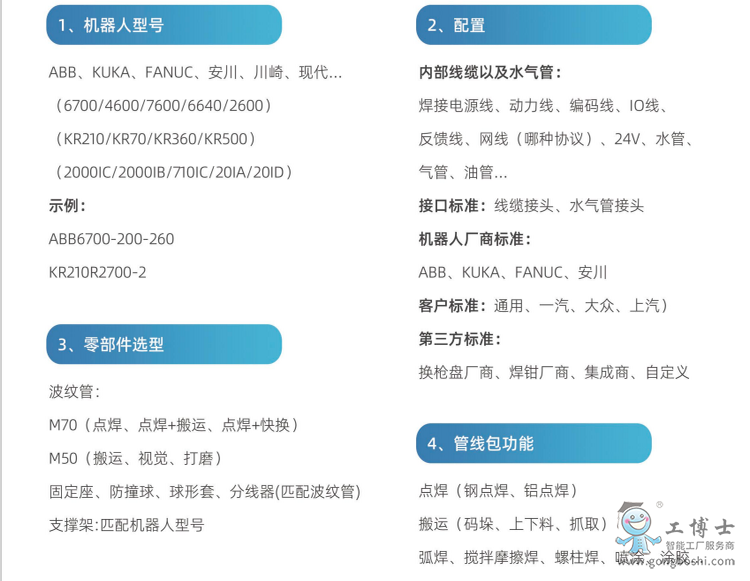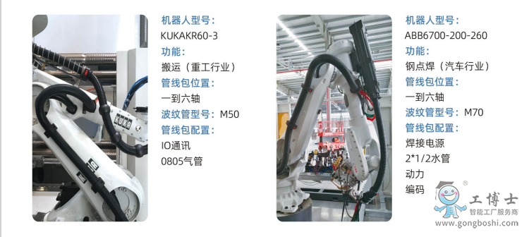 工博士管線包產品線覆蓋了全球*****機器人的全系列型號,用更優的結構設計來減少對機器