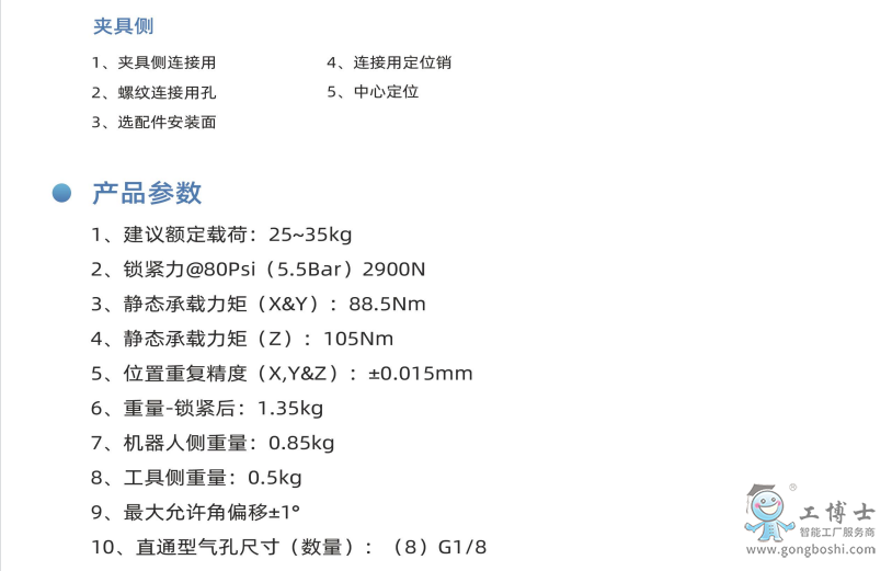 工博士***機(jī)器人末端快換裝置以高精度、高強(qiáng)度、高性能的產(chǎn)品優(yōu)勢(shì)使單臺(tái)機(jī)器人能夠在制