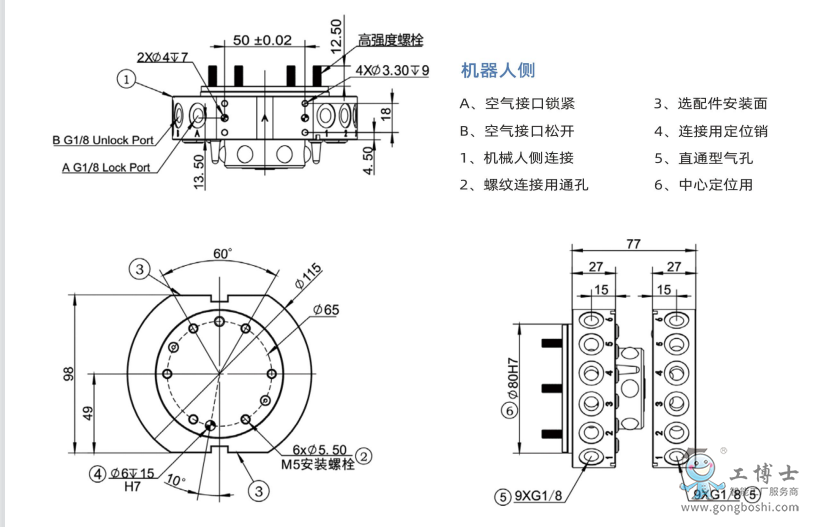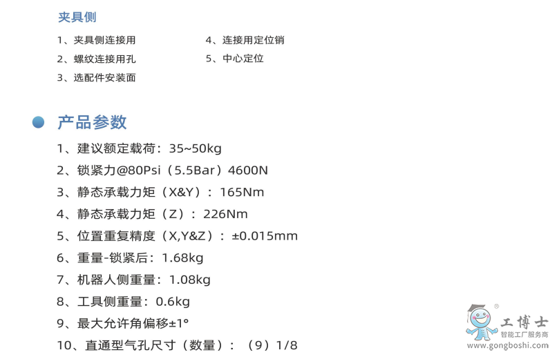工博士***機器人末端快換裝置以高精度、高強度、高性能的產品優勢使單臺機器人能夠在制