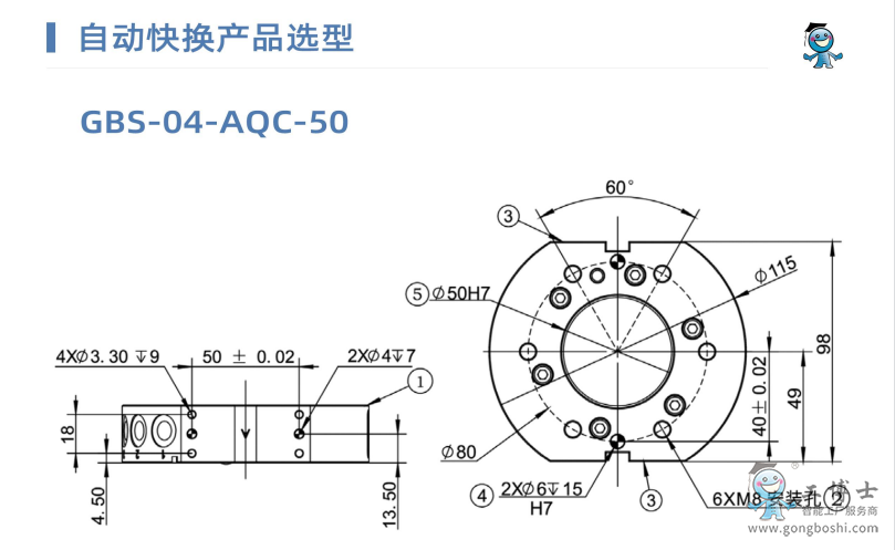 工業機器人快換裝置GBS-04-AQC-50