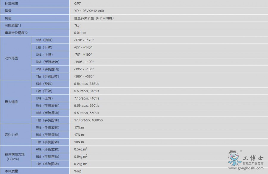 安川機器人 -GP HP系列 MOTOMAN-GP7 通用機器人