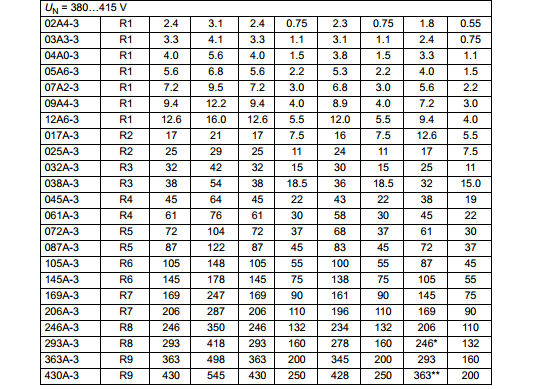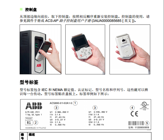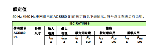 | (400V) ACS880-01;防護等級:IP21;輸入電壓:三相AC380-415V; 頻率:50/60Hz |