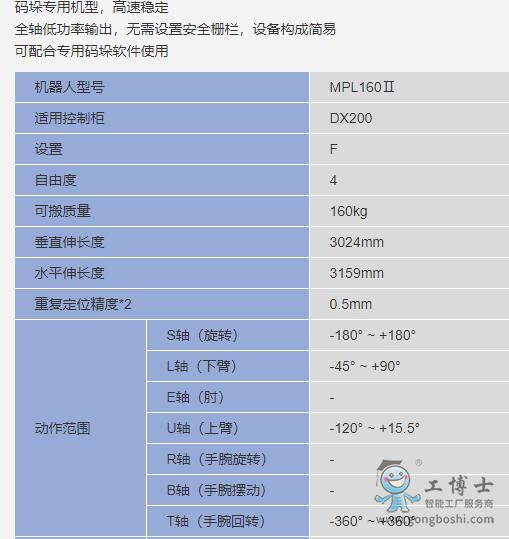 安川機器人 -MPL系列 MPL160 二系列 碼垛機器人