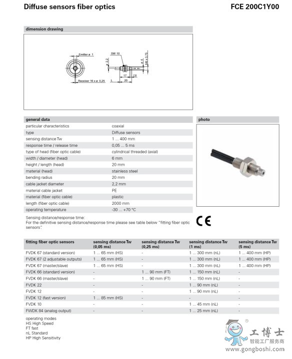 FCE 200D1Y01光纖感應頭-Baumer 堡盟 光纖頭