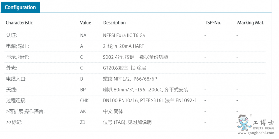 E+H恩德斯豪斯雷達液位計FMR52-NAACCDBPCHK+AKZ1型號說明