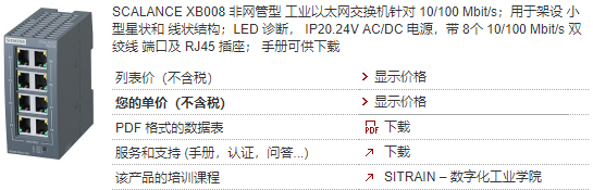 SCALANCE XB008 非網(wǎng)管型 工業(yè)以太網(wǎng)交換機(jī)針對 10/100 Mbit/s;用于架設(shè) 小型星狀和 線狀結(jié)構(gòu);LED 診斷, IP20.24V AC/DC 電源,帶 8個 10/100 Mbit/s 雙絞線 端口及 RJ45 插座; 手冊可供下載 |