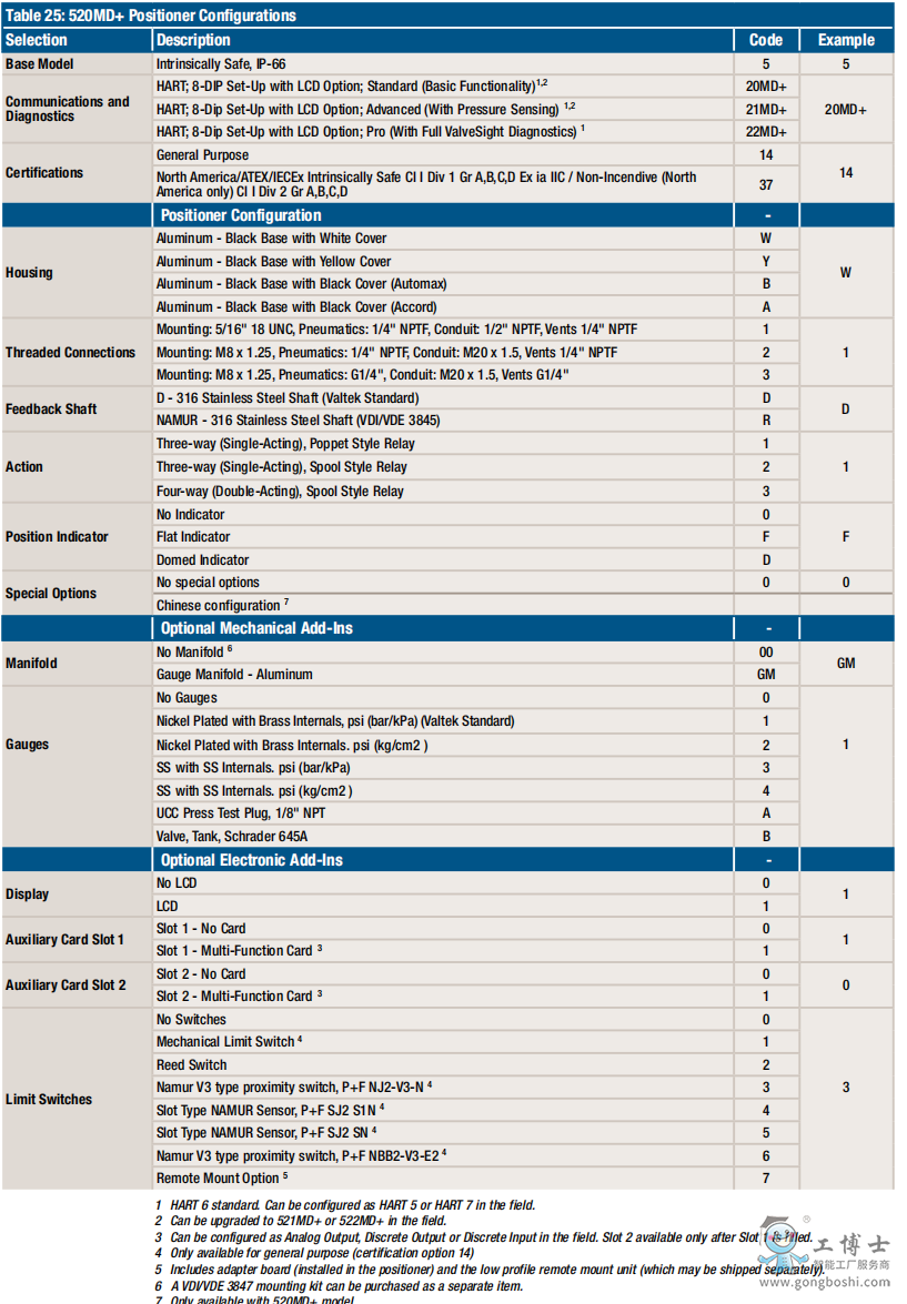 FLOWSERVE福斯定位器520MD+37-W1D200-000-0000型號說明