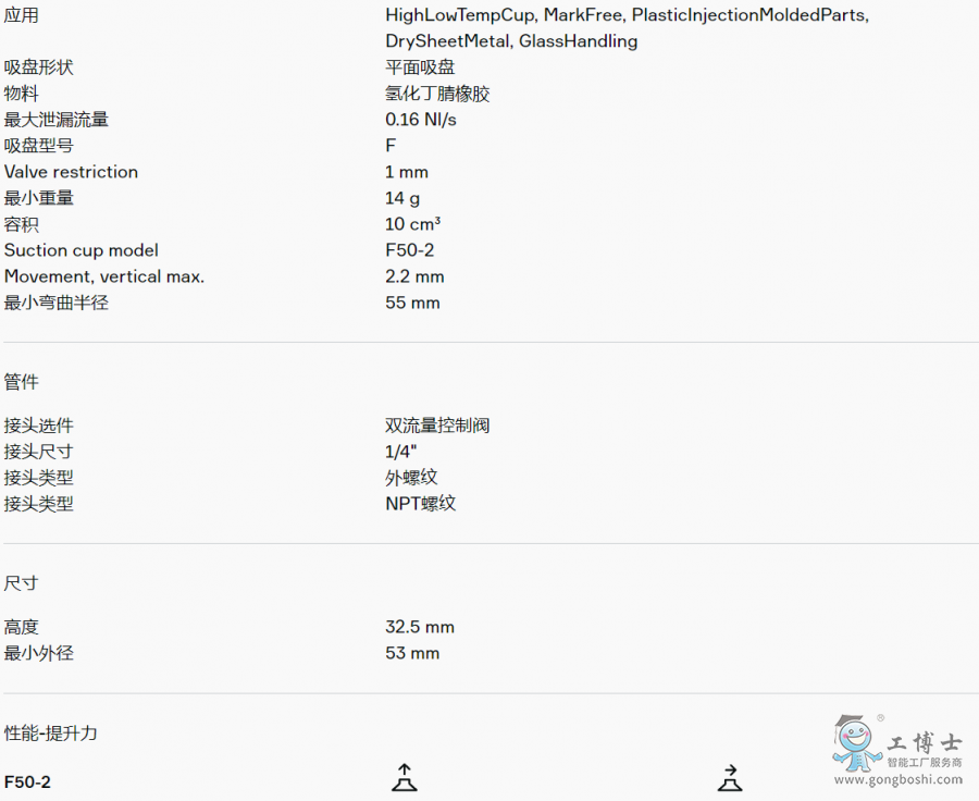PIAB派亞博 9909465平面吸盤(pán) F50-2 HNBR,1/4“NPT外螺紋,帶雙流量控制閥