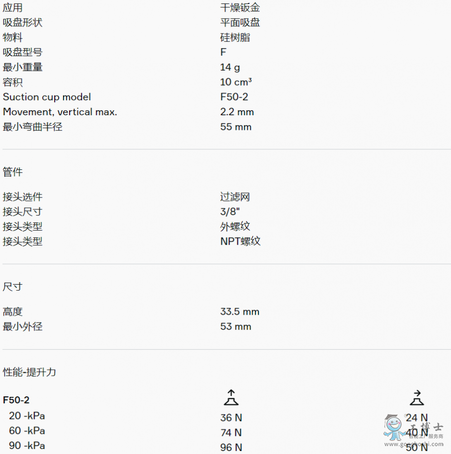 適用于硬紙板、鈑金、玻璃和多孔材料等平坦工件。該吸盤采用夾板結(jié)構(gòu),不僅可防止工件被吸入吸盤內(nèi)部而導(dǎo)致變形,而且在提升力平行作用于工件表面時(shí)還能增加摩擦力。產(chǎn)品穩(wěn)定性好,在工作期間幾乎不會(huì)發(fā)生任何偏移。
