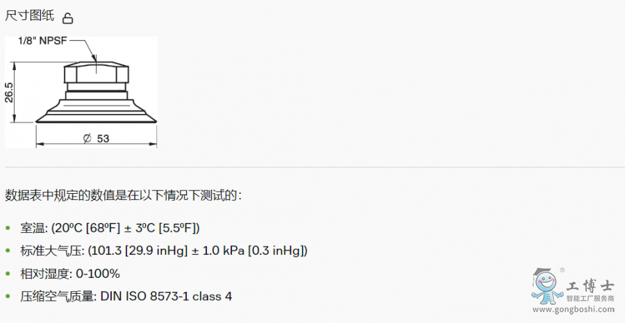 PIAB派亞博 0101753 平面吸盤 F50-2,接口:1/8“NPSF 內螺紋,帶網狀過濾器