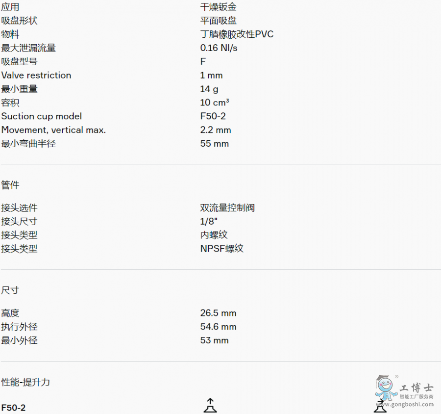 PIAB派亞博 0101773平面吸盤 F50-2 1/8“NPSF內螺紋,帶雙流量控制閥