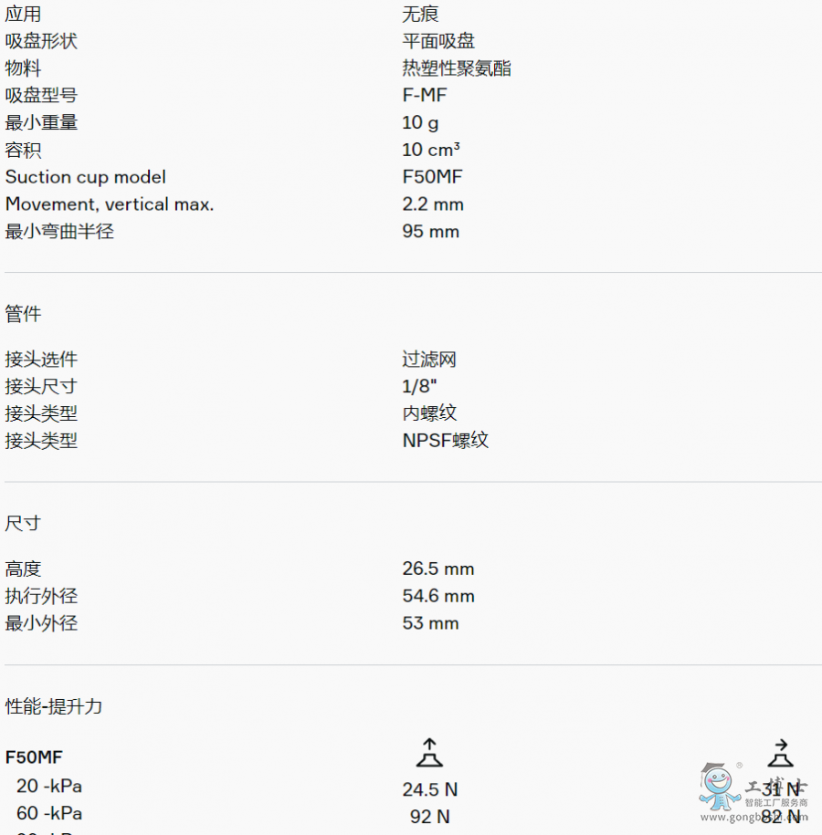 PIAB(派亞博)0101791 無痕平面吸盤F50MF