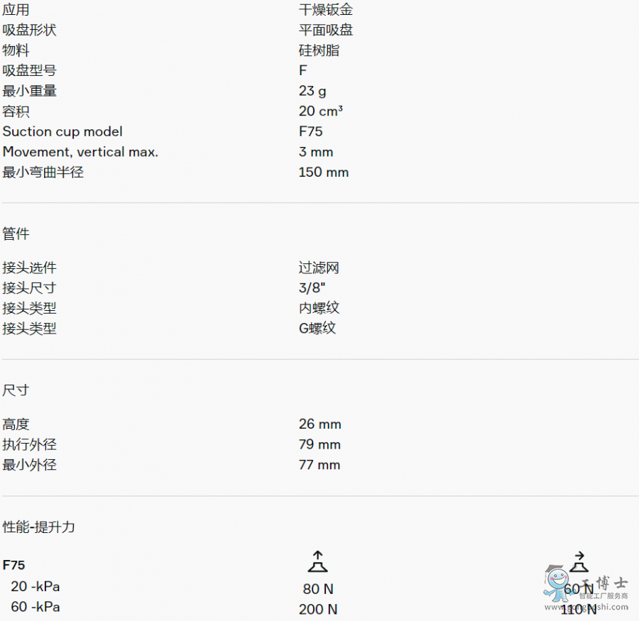 適用于硬紙板、鈑金、玻璃和多孔材料等平坦工件。該吸盤采用夾板結構,不僅可防止工件被吸入吸盤內部而導致變形,而且在提升力平行作用于工件表面時還能增加摩擦力。產品穩定性好,在工作期間幾乎不會發生任何偏移。