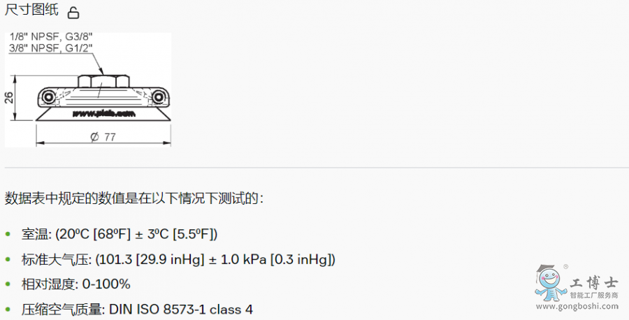 PIAB(派亞博) 0101867平面吸盤F75 G3/8“ 內螺紋, 帶篩網過濾器