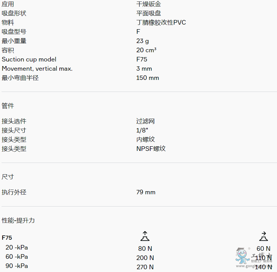 PIAB(派亞博) 0101873 平面吸盤(pán)F75 1/8“ NPSF 內(nèi)螺紋, 帶網(wǎng)狀過(guò)濾器