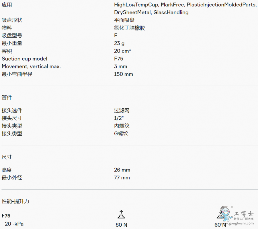 適用于硬紙板、鈑金、玻璃和多孔材料等平坦工件。該吸盤采用夾板結(jié)構(gòu),不僅可防止工件被吸入吸盤內(nèi)部而導致變形,而且在提升力平行作用于工件表面時還能增加摩擦力。產(chǎn)品穩(wěn)定性好,在工作期間幾乎不會發(fā)生任何偏移。