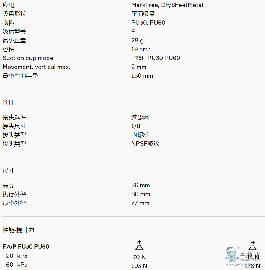 適用于平坦和粗糙表面。該吸盤(pán)采用夾板結(jié)構(gòu),不僅可防止工件被吸入吸盤(pán)內(nèi)部而導(dǎo)致變形,而且在提升力平行作用于工件表面時(shí)還能增加摩擦力。產(chǎn)品穩(wěn)定性好,在工作期間幾乎不會(huì)發(fā)生任何偏移。這種DURAFLEX®吸盤(pán)采用了專門(mén)研制的無(wú)痕材料,將橡膠的彈性和聚氨酯的耐磨性更好地結(jié)合在一起。