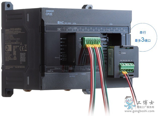 CP2E可通過安裝選項板使用***多3個串行端口。