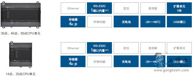 注.記載了CP2E的主要功能,可使用功能因機型而異。詳情請確認數據表(樣本編號:SBCA-CN5-131)。
