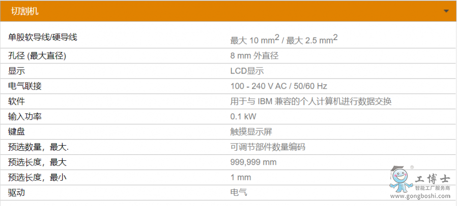 • 用于自動切割單根導線至定長