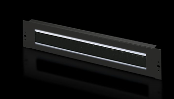 具有開口 390 x 40 mm (2 U) 或 390 x 20 mm (1 U),帶刷條套件,可以容納電纜夾鉗條。