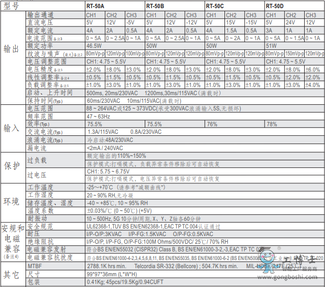 1. 如未特別說明,所有規格參數均在輸入為230VAC、額定負載、25℃環境溫度下進行量測。
