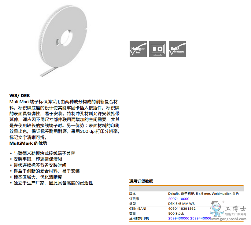Weidmuller DEK 5/5 MM WS魏德米勒 端子標記號 訂貨號2007110000 |