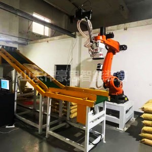 2.通過3D相機對袋裝物料的位置進行掃描,機器人準確抓取袋裝物料放到皮帶輸送機。