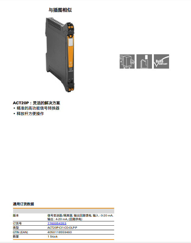 ACT20P-CI1-CO-OLP-P魏德米勒weidmulle信號(hào)變送器訂貨號(hào)7760054353 |