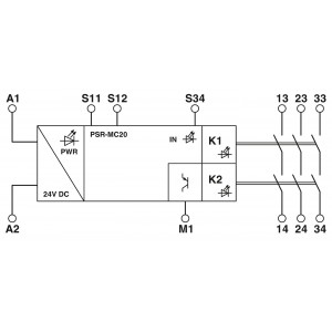 輸入電路與常開安全觸點輸出(13/14)、常開安全觸點輸出