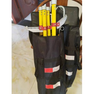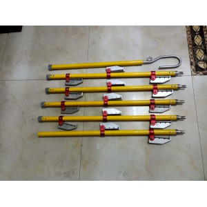4. 接完后:用風繩栓在鉤一側(cè)的環(huán)內(nèi),一人穩(wěn)住底部,一人拉繩,一到二人往起立,根據(jù)梯子的長短限定人數(shù),立起后把掛鉤勾在承力索或其它能固定的地方。